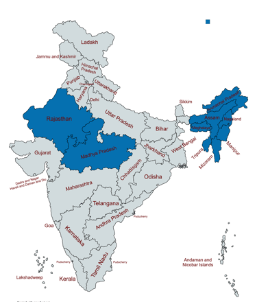 7 North-Eastern states along with Madhya Pradesh and Rajasthan in India